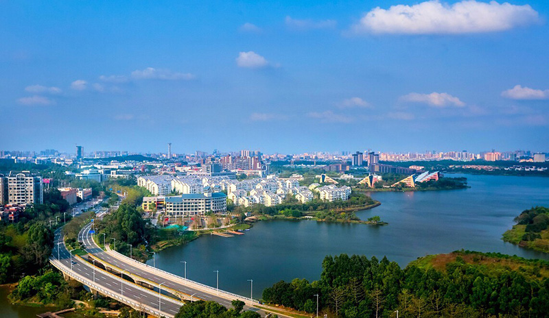 作為國家級高新技術產業開發區,松山湖不僅成為了東莞自主創新的旗幟、還在生態文明建設上取得成效。松山湖堅持“科技共山水一色,新城與產業齊飛”的生態發展理念,融山、水、園為一體,建成了松湖煙雨、月荷湖公園等生態公園,完善城市服務體系,實現人與自然的和諧共處、經濟社會與資源環境的協調發展。