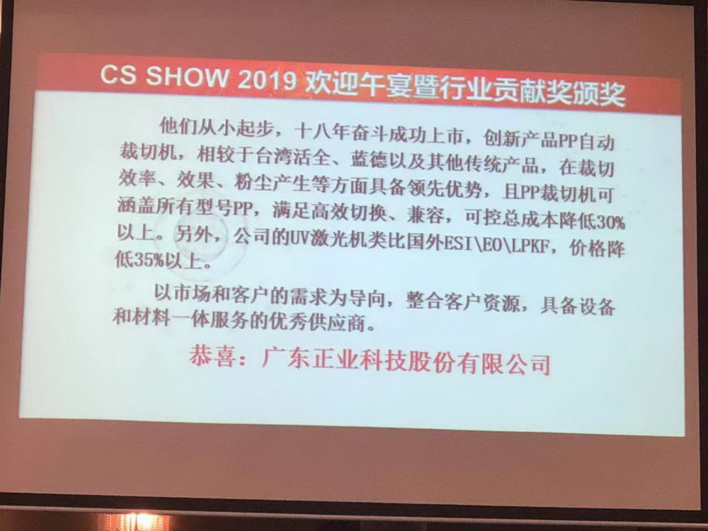 8月28日,CS SHOW 2019歡迎午宴暨行業(yè)貢獻(xiàn)獎典禮隆重舉行,屆時對獲得PCB行業(yè)貢獻(xiàn)獎企業(yè)稱號的分別授予相關(guān)獎牌和獎狀。在此次頒獎典禮中,正業(yè)科技榮獲了2019年(第一屆)電路板行業(yè)優(yōu)秀貢獻(xiàn)獎,集團副總裁徐地明代表公司上臺領(lǐng)獎。