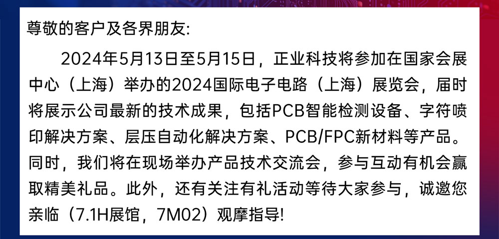 邀請函 | 正業科技誠邀您共赴2024 國際電子電路(上海)展覽會