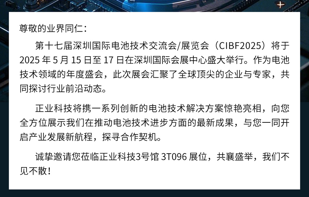 展會邀請 | 正業科技邀您共赴深圳CIBF2025電池展,共探行業新未來