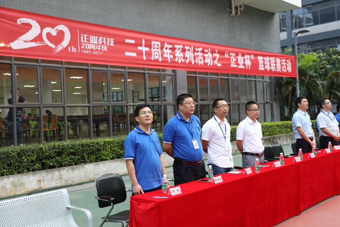 5月18日下午6點,微風習習,正是運動的好時機,正業科技20周年慶系列活動之“正業杯”籃球聯賽開幕式,在正業集團總部籃球場隆重舉行。