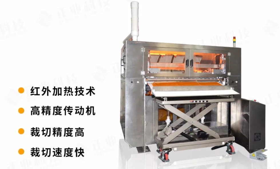正業半固化片無塵自動裁切機,旨在解決傳統裁切機純機械分切方法中裁切刃口存在的粉塵、毛邊及需要多工序后續處理后才能使用的問題,提高了裁切的精度和品質,切口粉塵量減少95%以上粉塵,增加了吸塵裝置,保障了作業員的健康。